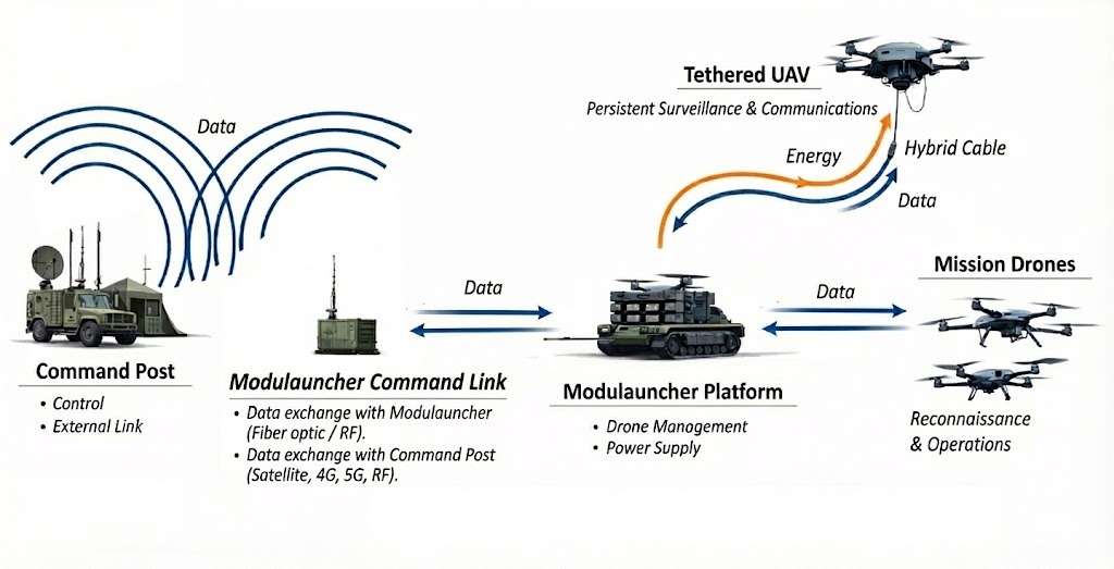 Modulauncher is a modular aerial deployment architecture designed to operate from non-dedicated platforms, even in degraded or denied communications environments.